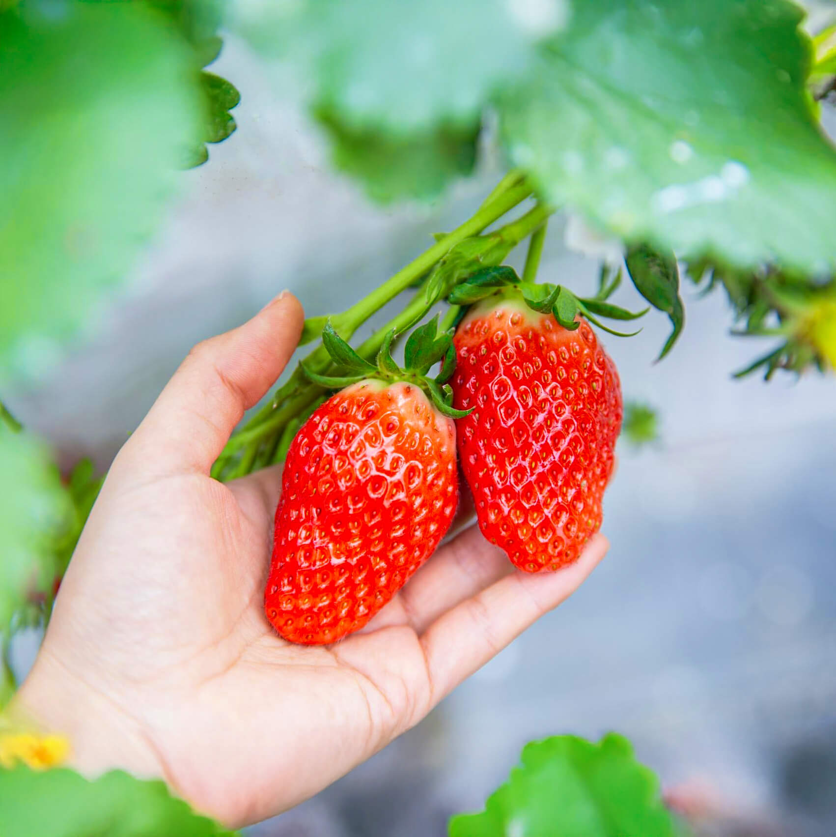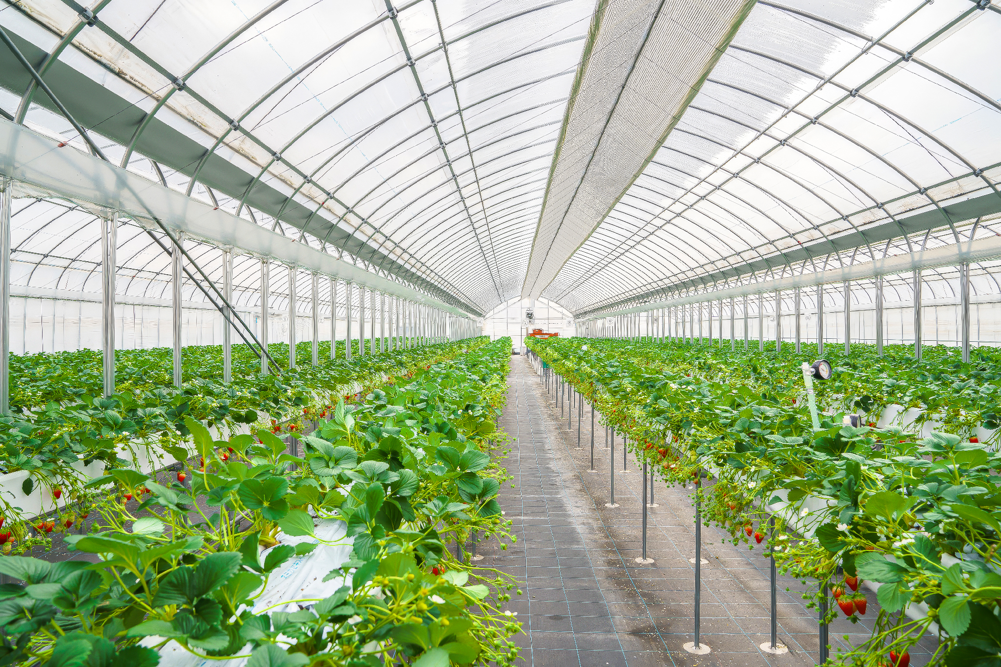 自分で摘んで食べるいちごは格別の味です。この味、喜びを多くの方に知っていただきたいという思いから、通路を広めにし、お子様からご高齢の方まで腰をかがめることなくいちご摘みのできる高設栽培を選びました。
